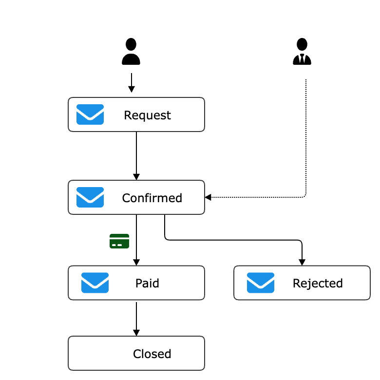 Example 2: A customer calls to make a booking and should receive an email with an accept link. The customer accepts the booking.