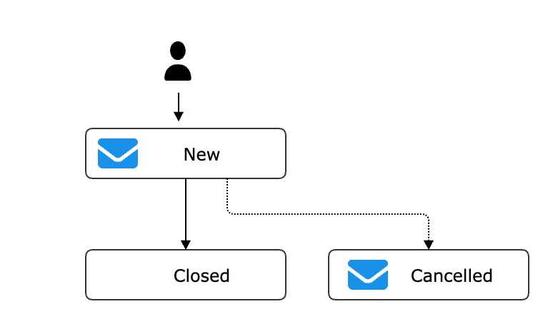 Once you've defined all the reservation statuses and connected them, you'll see a workflow emerge. You might need to perform some automatic actions within the workflow. For example, sending an email reminder if payment hasn't been made 30 minutes after booking. Or automatically closing a reservation if payment hasn't been made 1.5 hours after the reminder. These actions are indicated in the workflow with dotted lines.