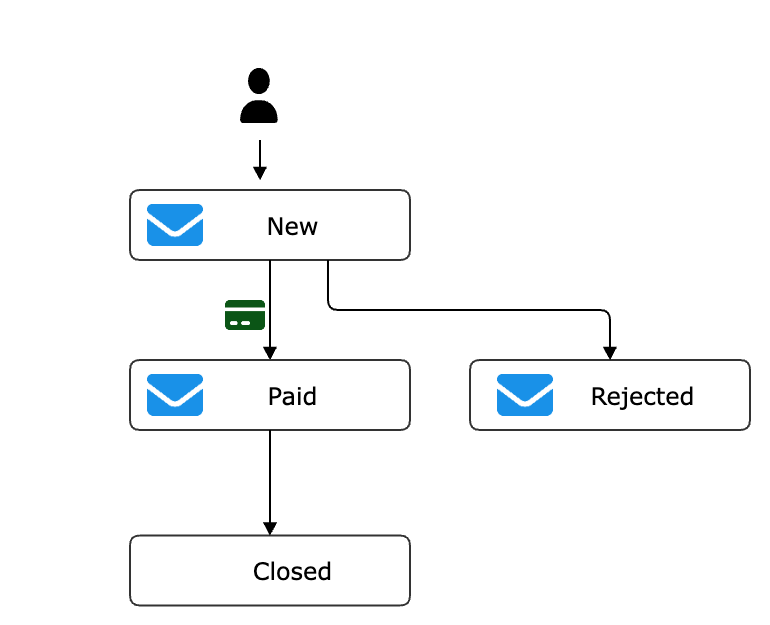 Example 3: When a customer makes a reservation, it's not yet a confirmed reservation; it still needs to be accepted. If accepted, the customer receives an email, and 5 days before the reservation is due to take place, they receive a reminder email.