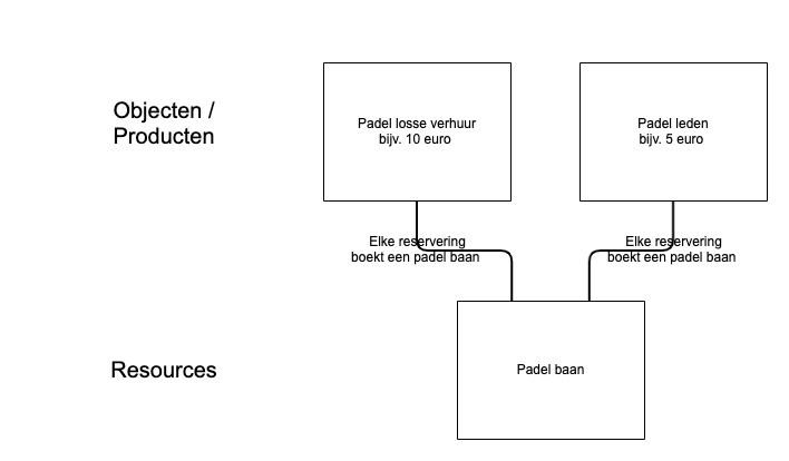 Voor deze casus wordt één resource opgezet: de R1: "Padel baan".