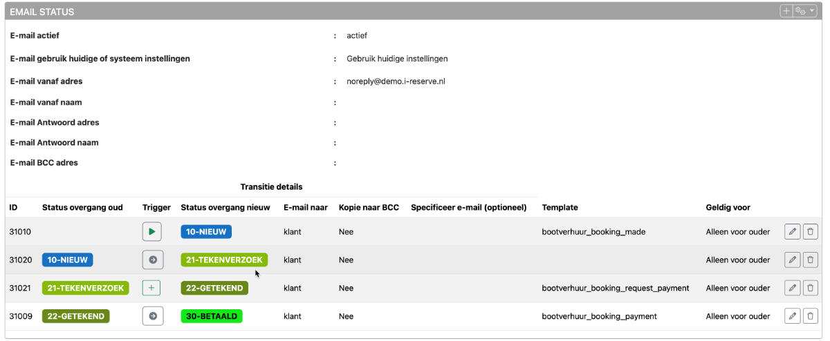 - Voeg de actie "Update booking" naar i-Reserve toe.